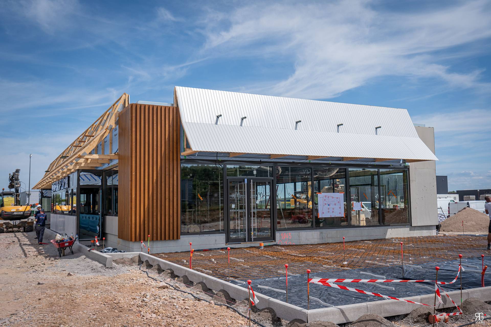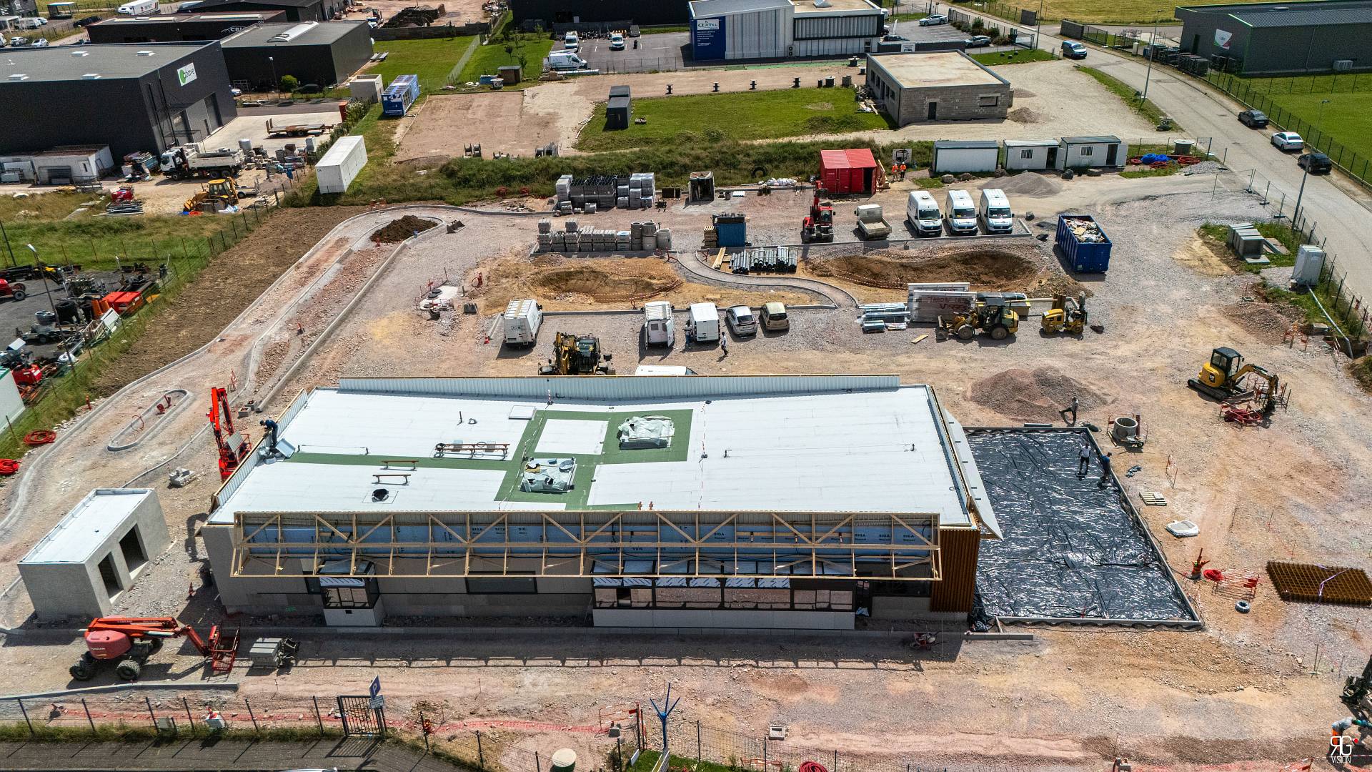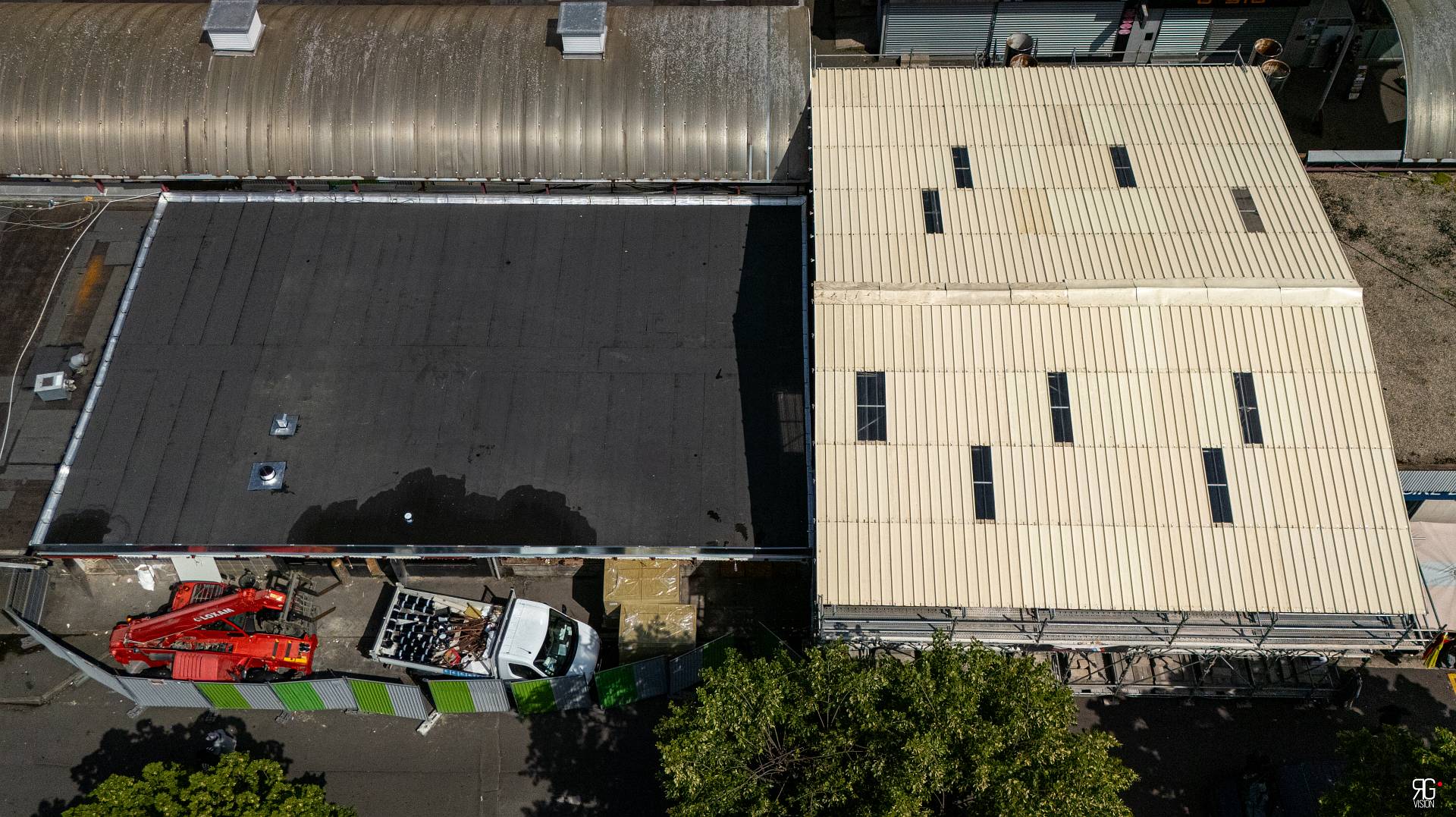 Étanchéité complète d'un bâtiment à usage commercial. Membrane synthétique haute performance, traitement des points singuliers liés aux équipements techniques en toiture, conformité aux exigences industrielles.