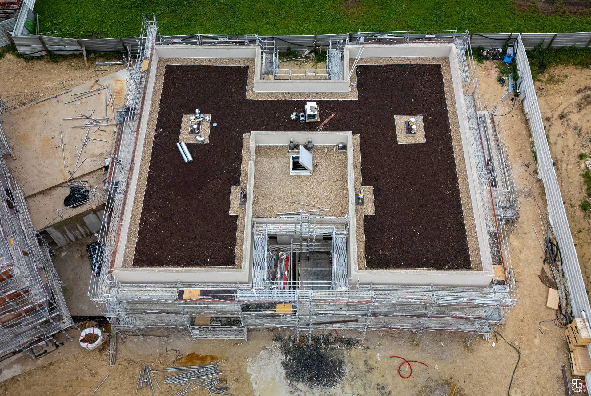 Réfection complète de l'étanchéité sur bâtiment collectif R+5. Complexe bicouche asphalte, traitement des points singuliers, relevés d'acrotères et mise en conformité des évacuations eaux pluviales.